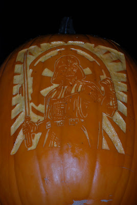 This is my pumpkin. (Derrick's still isn't quite finished.)